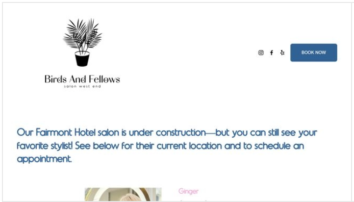 UPDATE: Ginger's Salon has temporarily closed its doors due to ongoing renovations. However, we understand the importance of maintaining exceptional service and convenience for her valued clients. To ensure a seamless transition, we transformed Ginger's website into a single landing page that provides all the necessary information for scheduling hair services during this temporary closure.